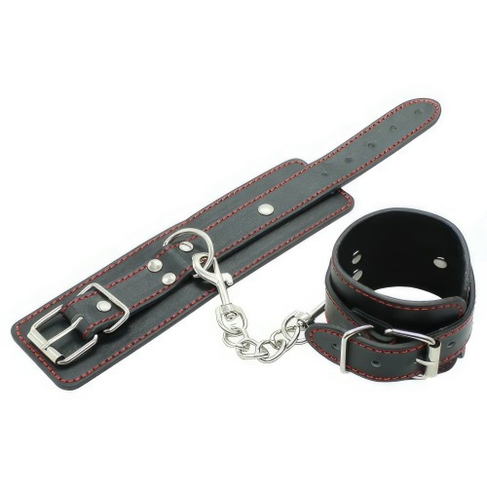 Зарегистрированным клиентам даем скидки до 20%Черные наручники с красной окантовкой
