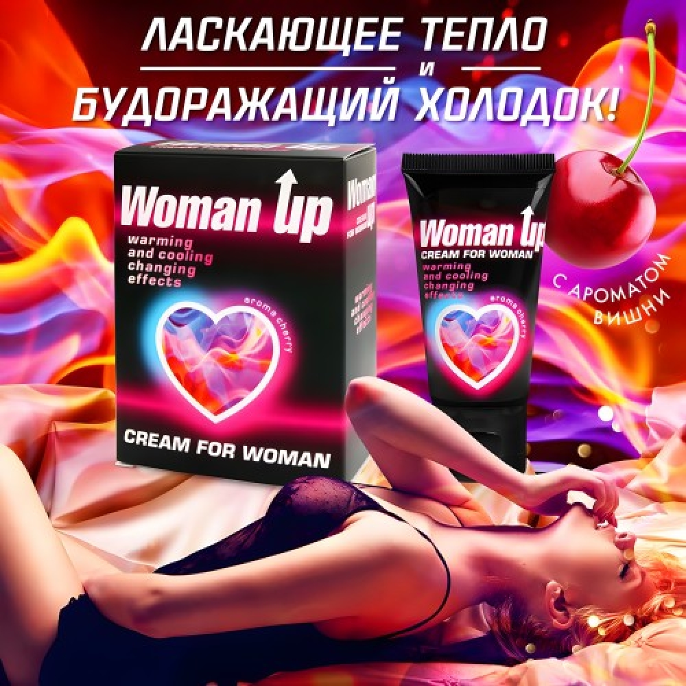 Женский возбуждающий крем Woman up с волнующим ароматом вишни. Раскрывает чувственность и раскрепощает, дарит потрясающие ощущения во время интимной близости.