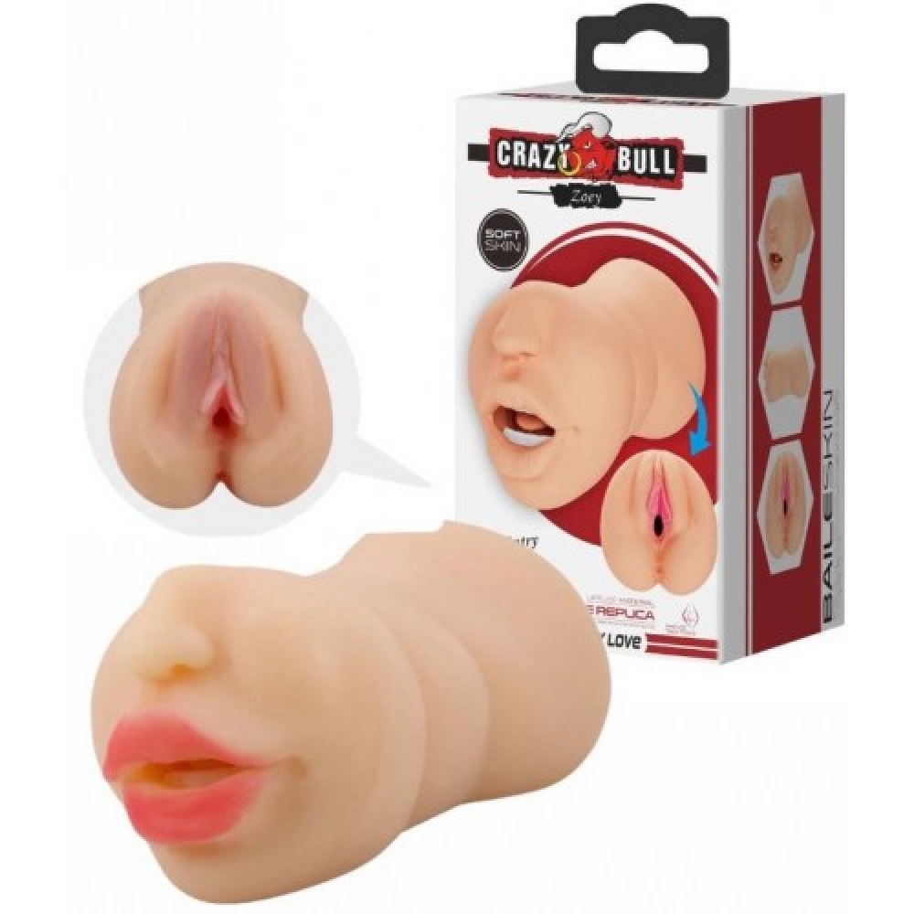 Он выполнен в виде двух любовных отверстий: вагины с мурашками на коже и женского ротика с зубками и подвижным язычком.
