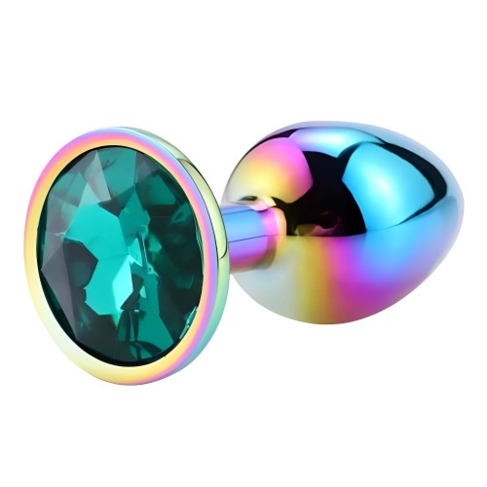 Зарегистрированным клиентам даем скидки до 20%Разноцветная анальная пробка с зеленым камушком L