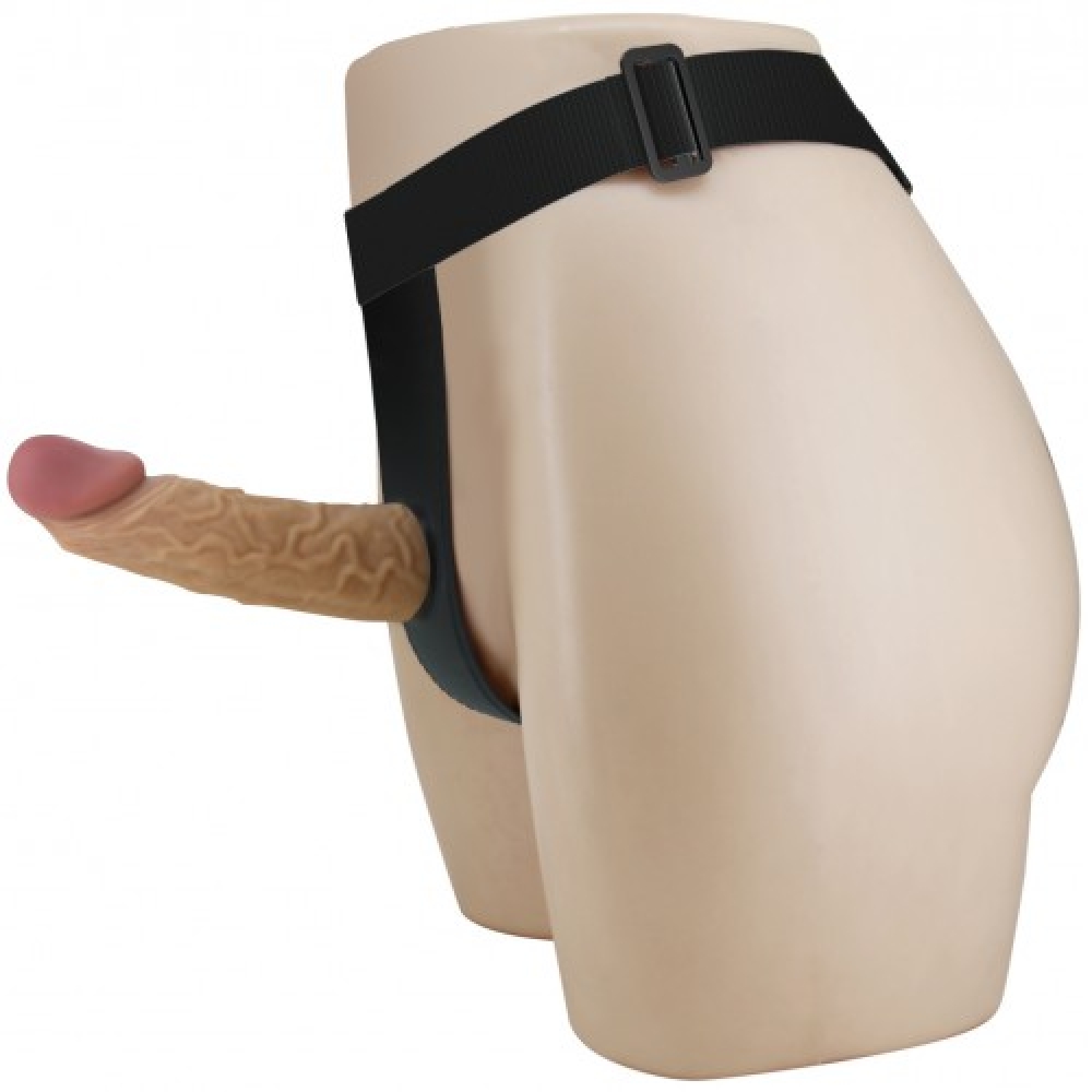Игрушка представляет собой реалистичный пустотелый страпон с мощным прожилковым рельефом и ярко выраженной головкой, повторяющий анатомию пениса.