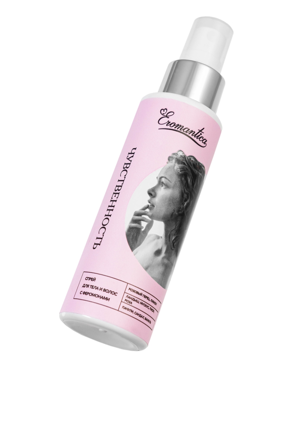 Зарегистрированным клиентам даем скидки до 20%Добавь в свой ежедневный уход капельку соблазна с коллекцией спреев для тела и волос Eromantica. Спрей для тела и волос с феромонами Чувственность подчеркнет твою индивидуальность и добавит изысканности образу благодаря легким цветочным нотам. Ноты: Сандал — тёплый и древесный, успокаивает и умиротворяет. Розовый перец — острый и стимулирующий, придаёт композиции пикантную изюминку. Ландыш — нежный и свежий, наполняет ароматом весеннего утра и вдохновляет на прекрасный день. Как применять: встряхни, распыли на тело и волосы после душа или в течение дня. Избегай попадания в глаза. Храни при комнатной температуре вдали от прямых солнечных лучей. Встряхивай перед каждым применением.