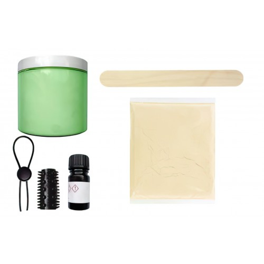 В набор входят: 1 упаковка 3D-гипса, баночка с силиконом, пузырек с затвердителем, эрекционное лассо, насадка на член, деревянная палочка и инструкция.