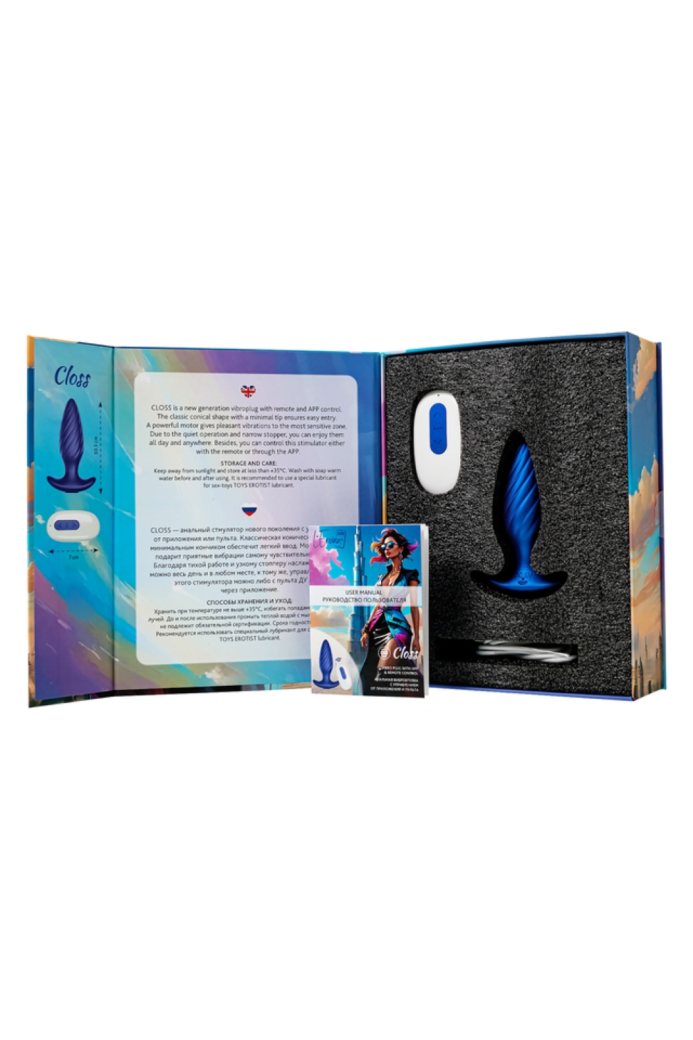 Зарегистрированным клиентам даем скидки до 20%Closs от L’Eroina — это анальная вибровтулка нового поколения, созданная для тех, кто хочет добавить немного остроты и элегантности в свои интимные моменты. Благодаря своей классической конической форме с узким, аккуратным кончиком, эта игрушка легко и комфортно вводится, гарантируя мягкое и приятное погружение. Но настоящая магия начинается, когда ты включаешь ее вибрации — мощный мотор способен пробудить самые чувствительные участки твоего тела, даря волны удовольствия в течение дня, где бы ты ни находилась. Тихая работа Closs позволяет наслаждаться ею в самых неожиданных местах, а удобный узкий стоппер гарантирует безопасность и комфорт, независимо от продолжительности использования. Управляй ее вибрациями самостоятельно или передай управление партнеру — с пульта или через приложение, ты можешь играть с различными настройками, выбирая между 10 режимами вибрации и находя свой идеальный ритм. Closs предлагает вместе расширить границы возможностей с приложением. Работа приложения осуществляется в тестовом режиме и может быть нестабильна. Перспективная функция управления Bluetooth через смартфон дает игрушке возможность вибрировать в такт музыке, реагировать на движения смартфона и рисунки на экране, и даже обеспечить присутствие партнера независимо от расстояния. Этот стильный аксессуар выполнен в ярком, сверкающем синем металлике, что делает его не только функциональным, но и визуально привлекательным. Благодаря водонепроницаемости уровня IPX7, Closs готов сопровождать тебя в ванной или душе, а магнитная зарядка сделает процесс подзарядки быстрым и удобным. Наслаждайся его компактностью — с длиной 10,5 см и весом всего 77 граммов, ты всегда сможешь носить его с собой и использовать тогда, когда тебе захочется немного тайного удовольствия. Closs от L’Eroina — это твой идеальный спутник в мире анальных удовольствий, будь то расслабление в одиночестве или неожиданные игры с партнером. Как управлять? На стимуляторе: Удерживай кнопку 2 секунды, чтобы включить устройство. Переключайся между 10 режимами вибрации, наслаждаясь разными уровнями интенсивности. С пульта: Включи игрушку и управляй её настройками вперед-назад, делая паузы в нужные моменты. Основные характеристики: Цвет: изысканный синий металлик Длина: 10,5 см Вес: 77 г Управление через пульт или приложение 10 режимов вибрации Водонепроницаемость уровня IPX7 Магнитная зарядка Тихая работа для дискретного использования