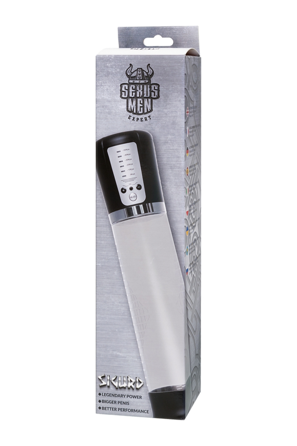 Зарегистрированным клиентам даем скидки до 20%Автоматическая помпа на аккумуляторе Sigurd от Sexus® Men – для самых требовательных мужчин, которые стремятся к легендарной мужской силе. Сексуальное могущество для мужчины – не только крепкая и надежная эрекция, но и внушительный размер орудия. С автоматической помпой Sigurd серии Sexus® Men Expert возможно достичь впечатляющих результатов в области увеличения размеров пениса, занимаясь пенбилдингом по эффективной программе тренировок. Для тренировки, а также чтобы подготовить себя к длительному и яркому сексу, вставьте свой пенис в колбу и откачайте воздух. С помпой Sigurd не нужно прилагать усилий для создания вакуума, она сделает это за вас комфортно и безопасно. Помпа имеет 5 уровней давления, которые регулируются кнопками +/ - на колбе с на LED-индикаторами 10/20/30/40/50 Кпа. После сброса давления кнопкой Valves умное устройство само откачает воздух до заданного режима, остановится, и будет держать заданный уровень. Благодаря отрицательному давлению увеличивается приток крови к половому члену. Прозрачный ABS-пластик позволяет наблюдать как пенис набирает силу и увеличивается в размере. А измерительная шкала помогает отслеживать результаты прямо в процессе. Для достижения ощутимых результатов рекомендуются систематические занятия по программе эффективного тренинга, которая входит в комплект. Регулярное использование вакуумной помпы Sigurd от Sexus® Men позволяет: последовательно увеличить длину и диаметр полового члена, делая его более внушительным и прокаченным сделать эрекцию более стабильной, крепкой и продолжительной повысить сексуальную выносливость и половое влечение поднять уверенность в своих возможностях и совершать новые сексуальные подвиги понизить вероятность образований аномальных фиброзных тканей Помпа Sigurd комплектуется программой тренировок и USB-проводом для зарядки. Порядок работы помпы: Включение: коротким нажатием на кнопку «+» помпа включается на нулевом уровне, загорается синий индикатор 0 Kpa Повышение уровней: коротким нажатием на кнопку «+» последовательно повышайте уровни откачки воздуха. Шаг – 10 Kpa, красные индикаторы загораются рядом с отметками давления в помпе. Помпа останавливается на заданном уровне и поддерживает указанный индикатором уровень давления. Если вы сбросите давление кнопкой «VALVES», помпа автоматически откачает воздух до заданного уровня. Понижение уровней: сбросьте давление кнопкой «VALVES», а затем коротким нажатием на кнопку «-» последовательно понижайте уровни давления в помпе. Шаг – 10 Kpa, красные индикаторы загораются рядом с отметками давления в помпе. Помпа останавливается на заданном уровне и поддерживает указанный индикатором уровень давления. Сброс давления: кнопкой «VALVES» помпа сбрасывает давление в колбе. Если вы не понизили уровень, то помпа автоматически восстановит его до указанного красным индикатором. Выключение: последовательно понижайте уровни кнопкой «-» до 0 Kpa, отмеченного синим индикатором. Через 5 секунд помпа отключится сама. Перед тем, как извлечь член из помпы, сбросьте давление кнопкой «VALVES».