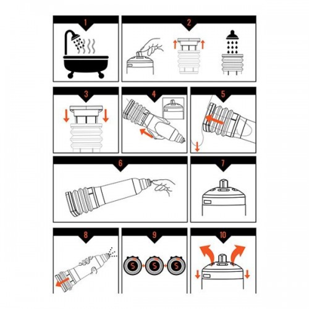 Способ применения: Налейте в помпу воду, затем введите в нее пенис. Основание помпы следует плотно прижать к лобковой кости. Для создания необходимого давления внутри помпы на нее следует нажат: при сжатии гофры через верхний клапан, вытесняется лишняя вода; после отпустите помпу – при распрямлении гофры в полости помпы автоматически создается разряжение. Используйте помпу в течение 5-15 минут, затем ослабьте давление с помощью клапана, снимите помпу и немного помассируйте пенис. Повторите трижды. Максимальный результат достигается при регулярном использовании.