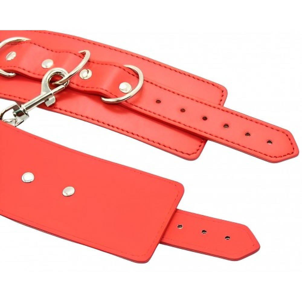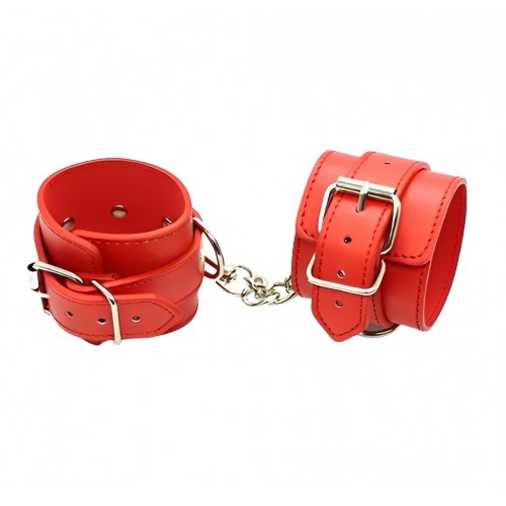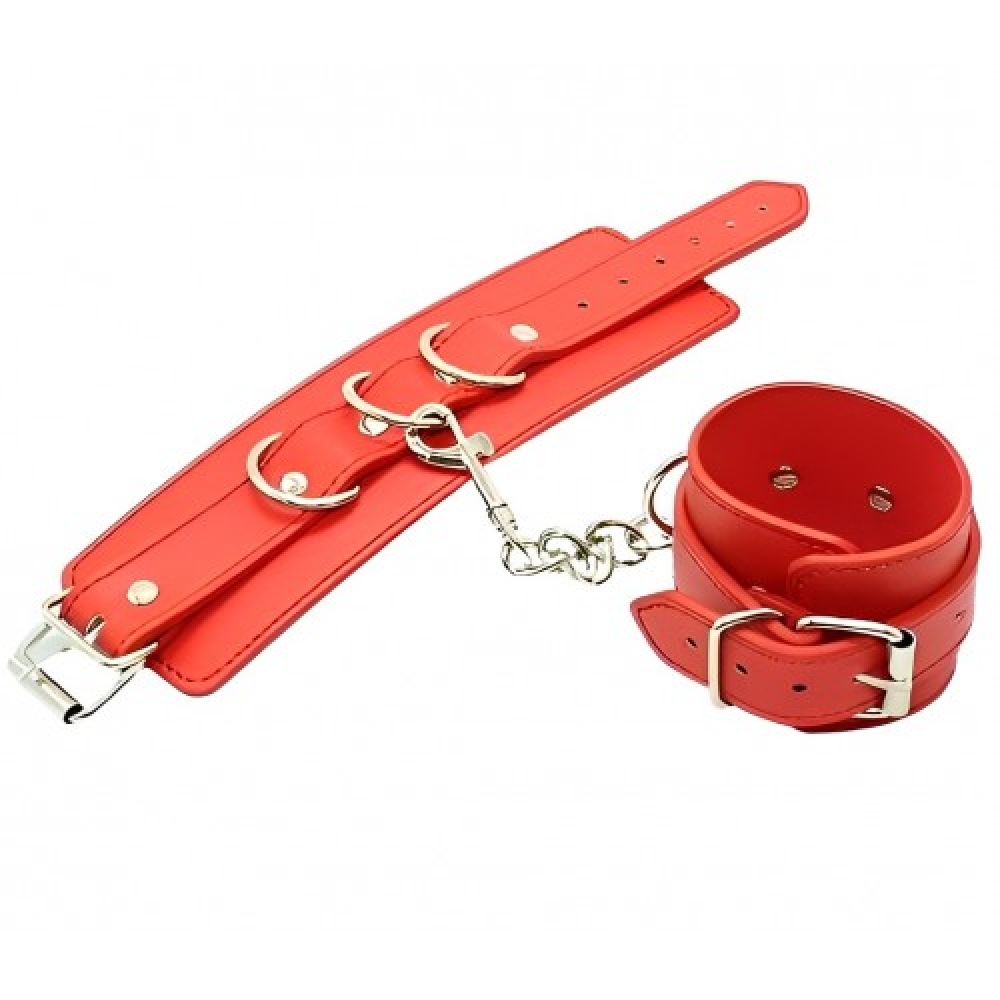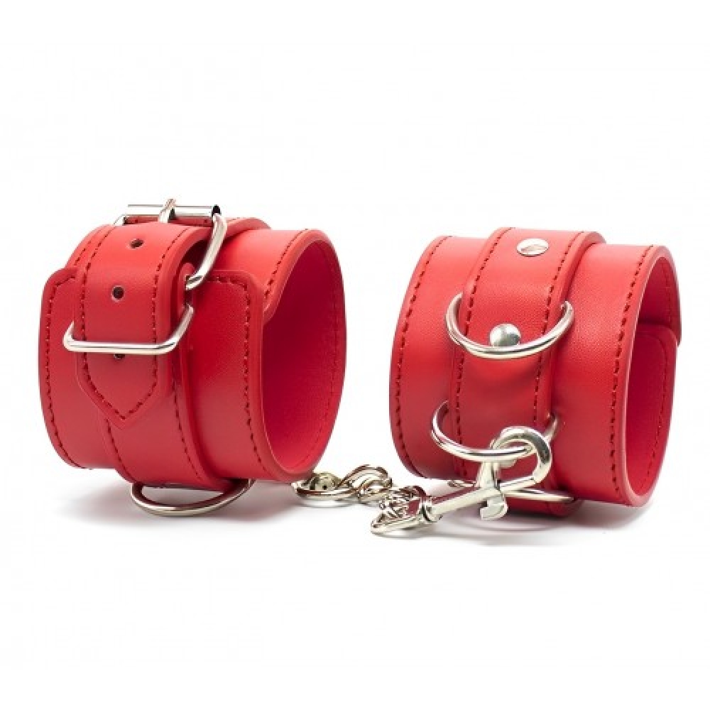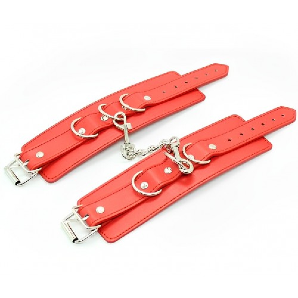 Наручники изготовлены из высококачественного материала. Выполнены в красном цвете, соединены между собой цепочкой на карабинах.