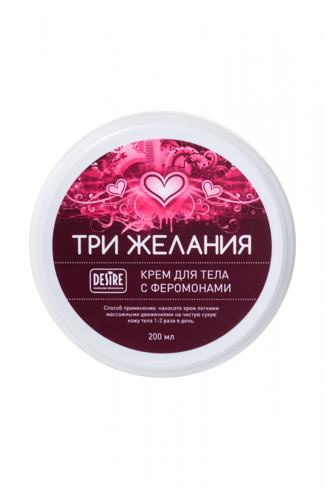 Зарегистрированным клиентам даем скидки до 20%Роскошный крем с феромонами для тела « ТРИ ЖЕЛАНИЯ» бережно увлажняет кожу, повышает ее упругость. Особенность крема состоит в эффекте входящих в него феромонов, которые привлекут дополнительное внимание лиц противоположного пола и помогут осуществить ваши желания.