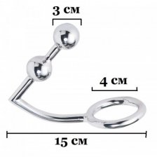 Этот девайс комбинирует в себе металлическое эрекционное кольцо, в которое следует продеть пенис и яички, и анальный крюк с шаром.