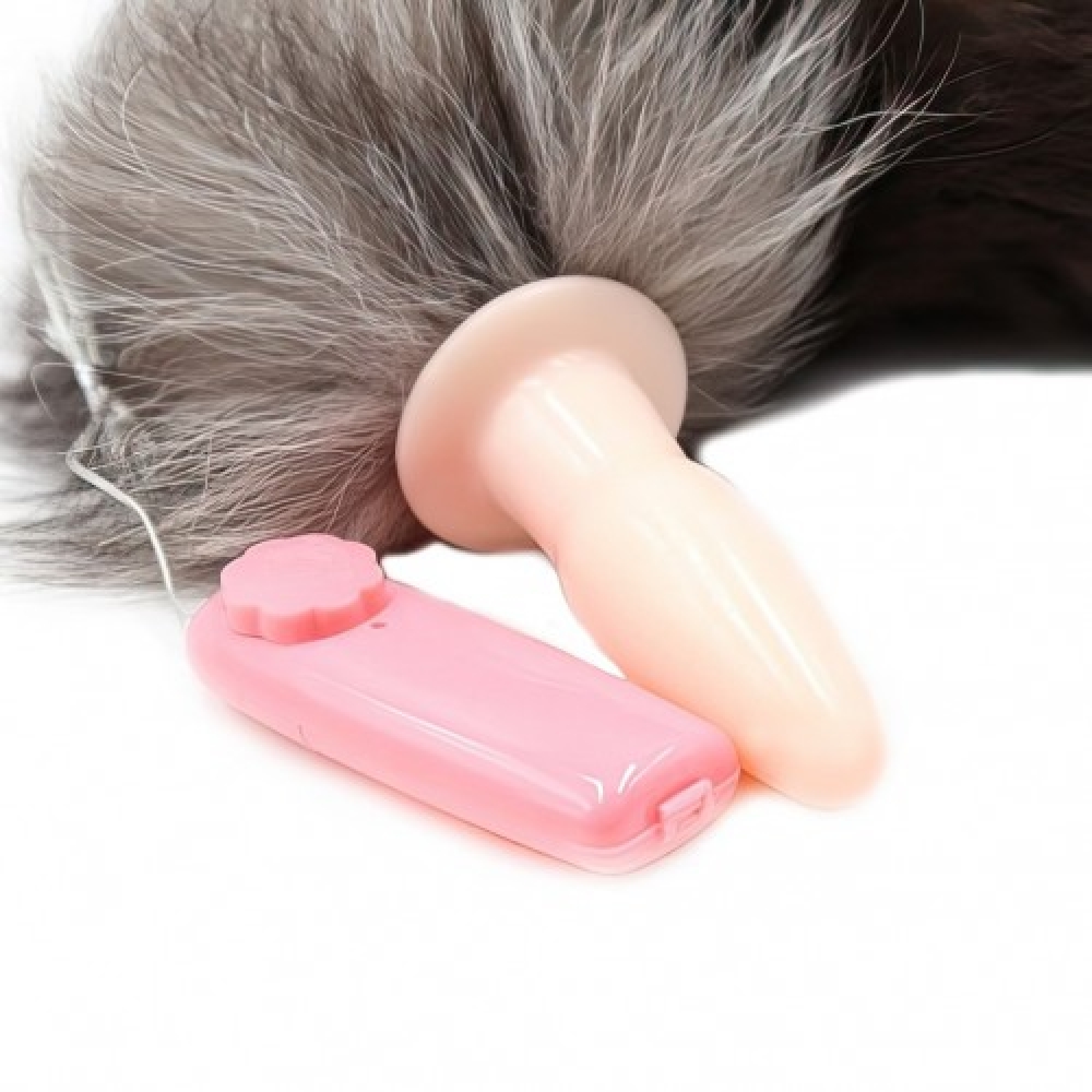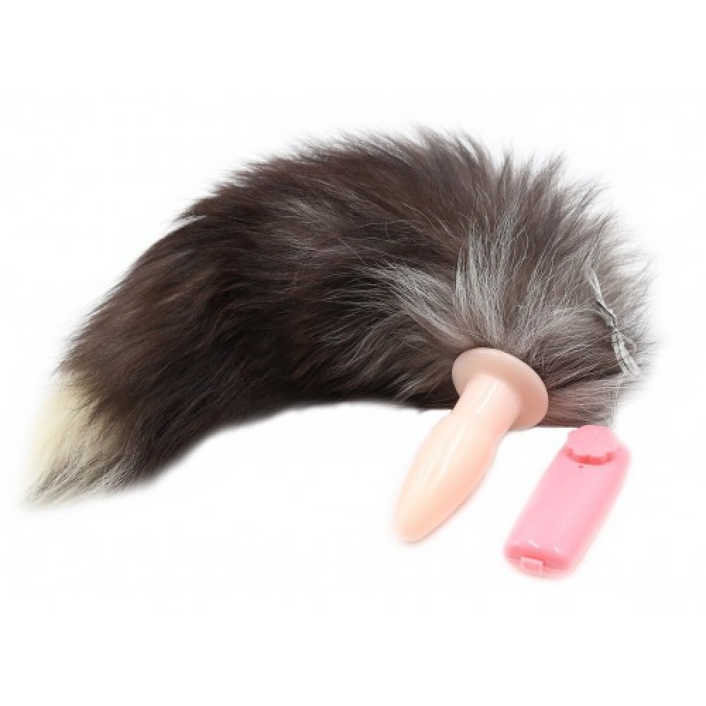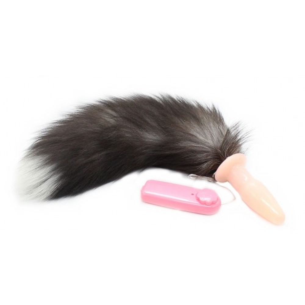 Зарегистрированным клиентам даем скидки до 20%Телесная анальная пробка с бурым хвостом и вибрацией 55 см