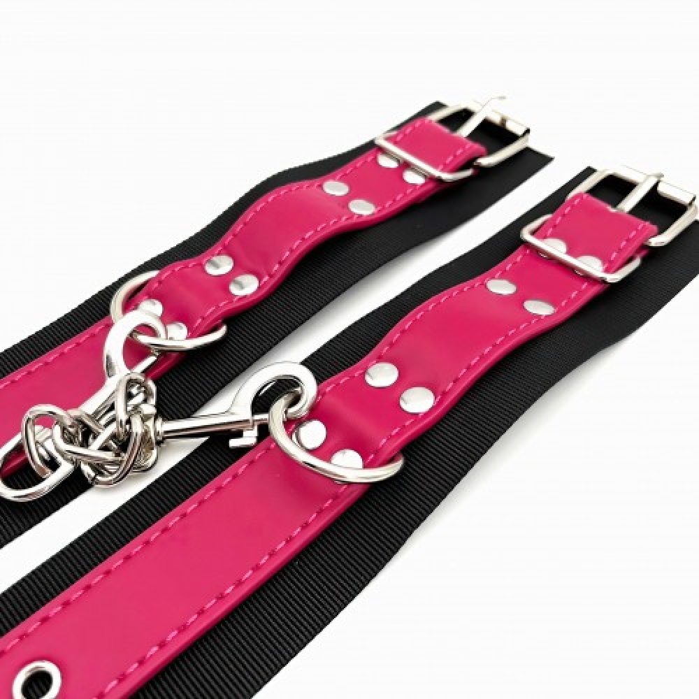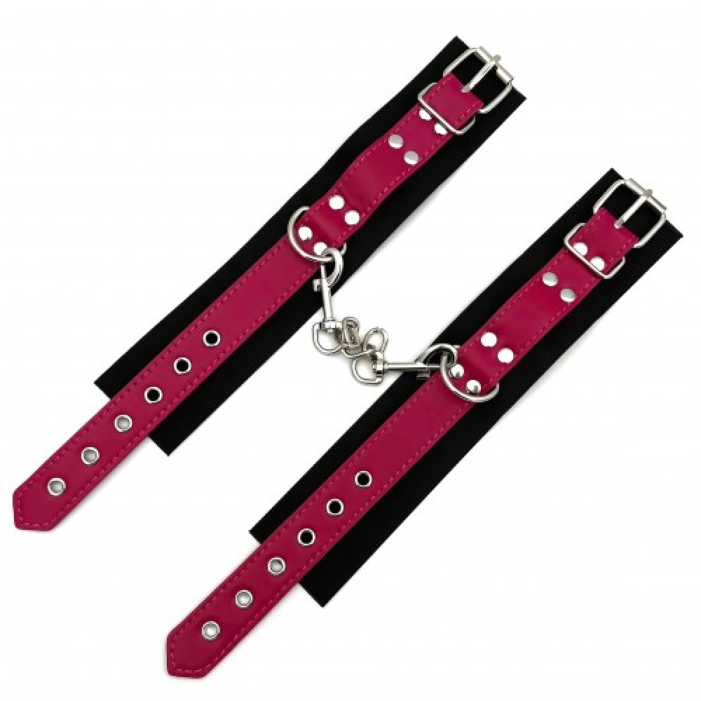 Оковы изготовлены из высококачественного материала. Выполнены в малиново-черном цвете, соединены между собой цепочкой на карабинах.