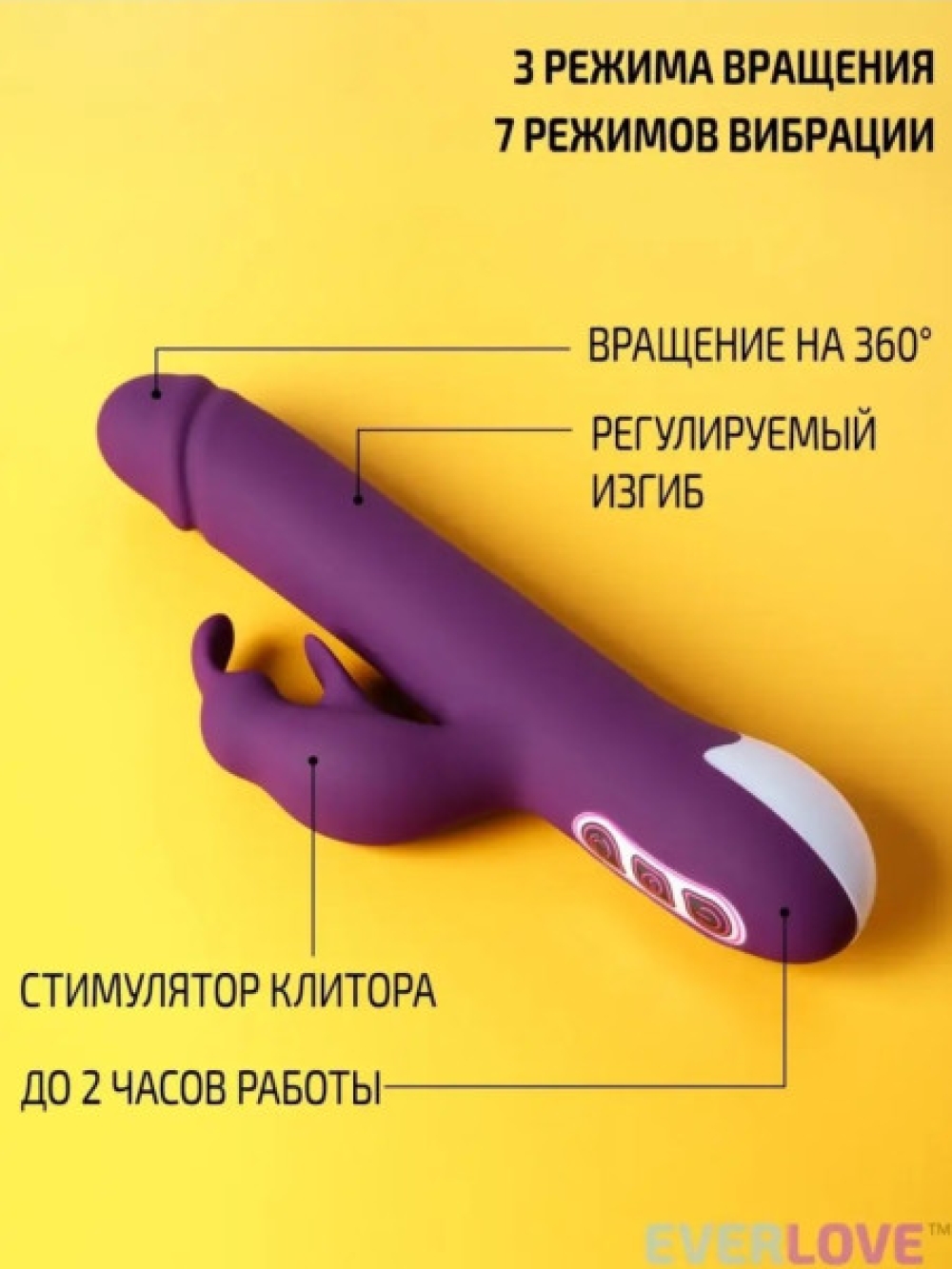 Зарегистрированным клиентам даем скидки до 20%Вибратор кролик EROS от EVERLOVE имеет вибрирующий отросток для стимуляции клитора в 2 зонах: снизу и сверху. Секс игрушка 18+ имеет мощную регулируемую вибрацию по всей поверхности, а также функцию вращения головки на 360 градусов. Интим игрушка имеет 7 режимов вибрации и клиторальной стимуляции, 3 режима ротации (в том числе отключение ротации),что позволяет выбрать наиболее комфортный и приятный вариант для каждого конкретного случая. Переключение режимов стимуляции и волновой вибрации осуществляется с помощью кнопок на основании вибростимулятора. Данный вид секс игрушек для взрослых является универсальным и может использоваться как для мастурбации женщиной, так и для пар, желающих разнообразить свою интимную жизнь. Он может использоваться как во время предварительных ласк, так и во время секса. Вибратор EROS - прекрасный способ улучшить качество Вашей сексуальной жизни.