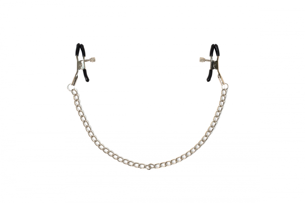Зажимы изготовлены из прочного металла, сами «прищепки» на кончиках покрыты мягкой резиной для максимального комфорта ощущений. Сила сжатия на сосок регулируется с помощью специального винтика, поэтому вы сможете сами контролировать степень фиксации, переходя от нежных ласк к более жесткой стимуляции. Зажимы соединены изящной цепочкой с бусинками, каждое движение которой будет ощутимо стимулировать сосочки, даря вам ни с чем не сравнимое удовольствие!
